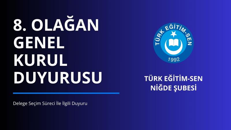 1. Delege seçimleri, merkez ve üniversiteler için 18 Ekim 2025 Cumartesi saat 10.00-17.00 arasında Türk Eğitim-Sen Niğde Şube binasında yapılacaktır.