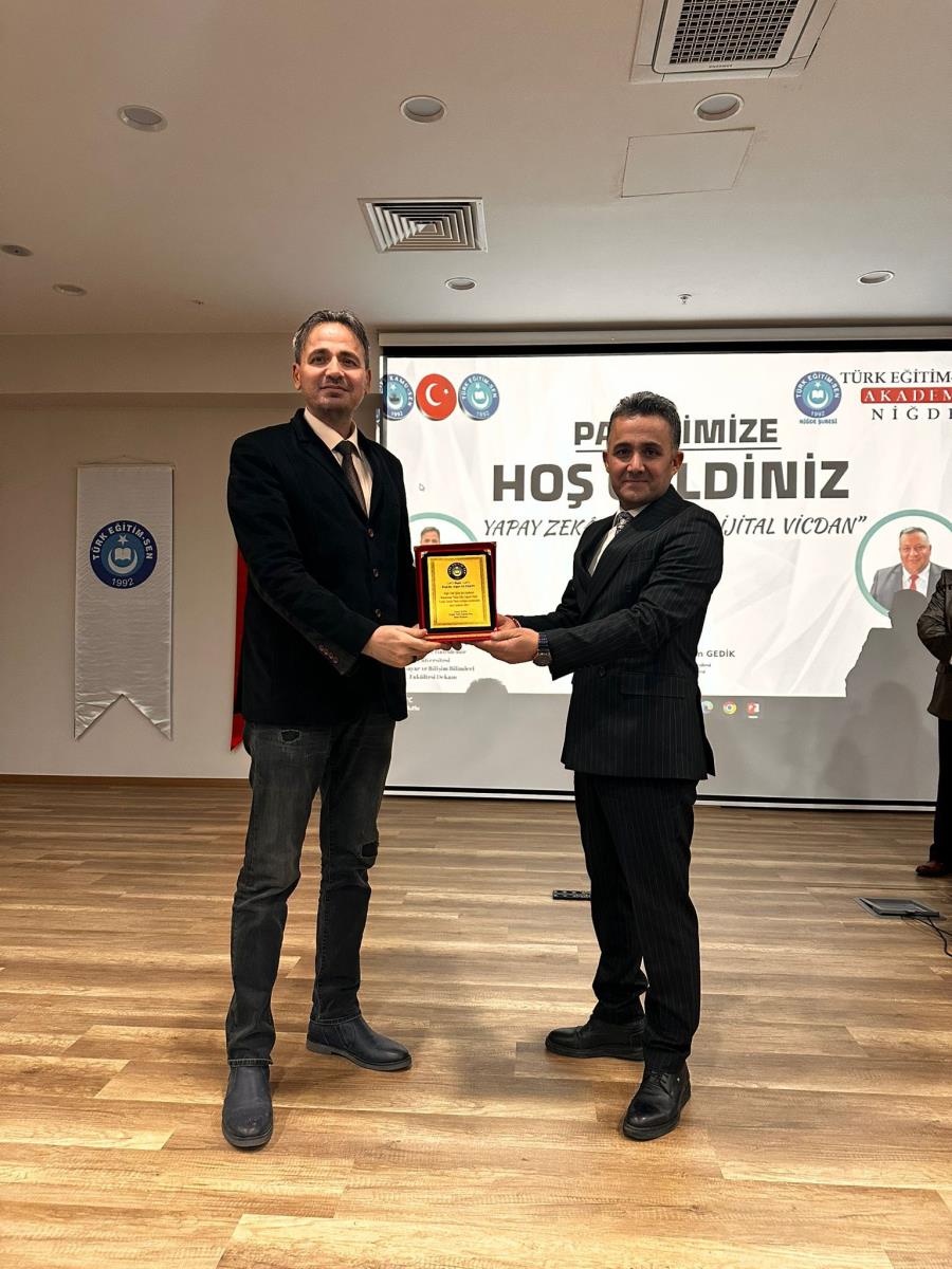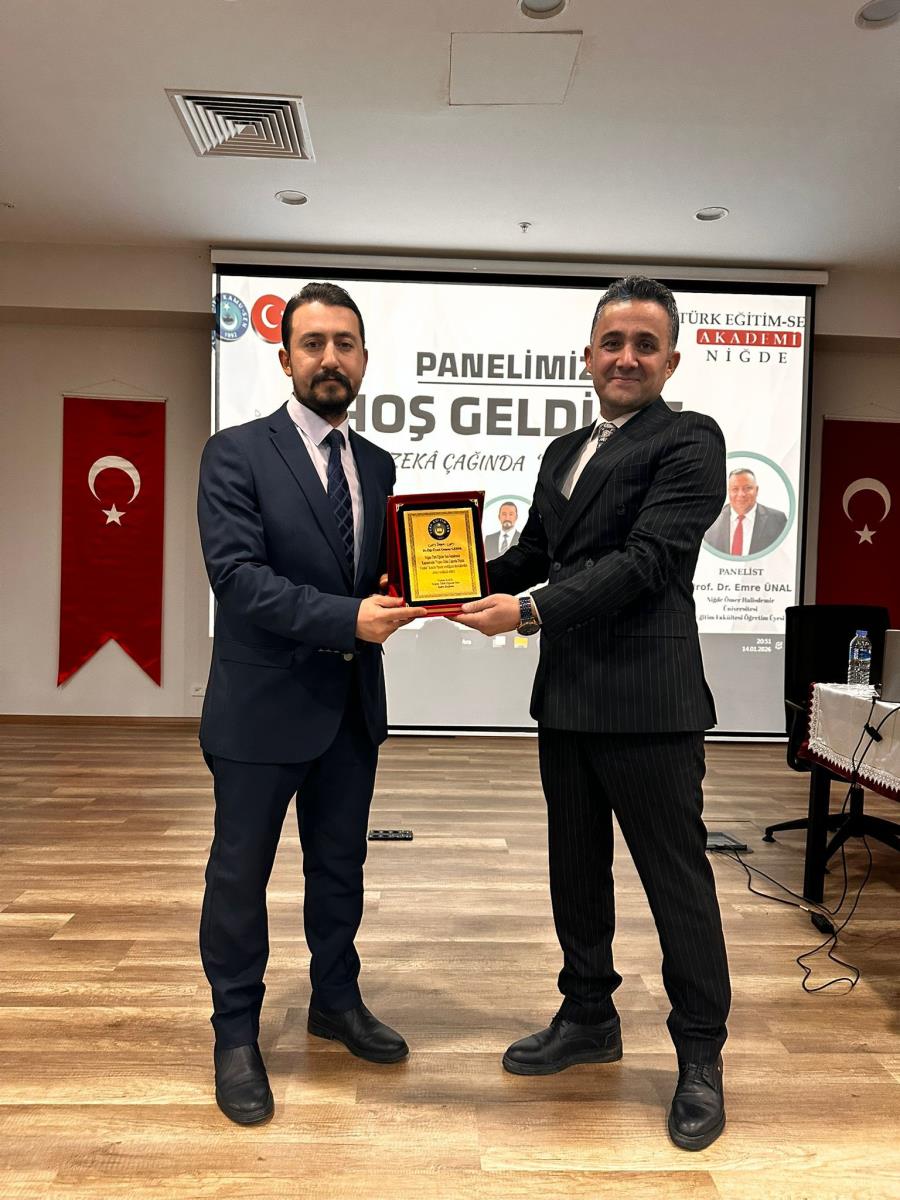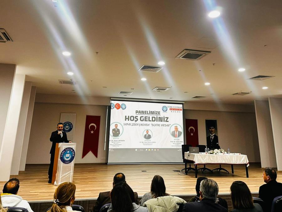 Niğde Türk Eğitimsen Akademisi bünyesinde "Yapay Zeka Çağında Dijital Vicdan" konulu panel yapıldı. Niğde Ömer Halisdemir Üniversitesi Dr. Öğretim Üyesi Sayın Osman GEDİK'in modorötörlüğünü; Niğde Ömer Halisdemir Üniversitesi Bilgisayar ve Bilişim Bilimleri Dekanı Sayın Prof. Dr. Alper AYTEKİN ve Niğde Ömer Halisdemir Üniversitesi Eğitim Fakültesi Öğretim Üyesi Sayın Emre ÜNAL'ın panelistliğini yaptığı panele yoğun katılım gerçekleşti.