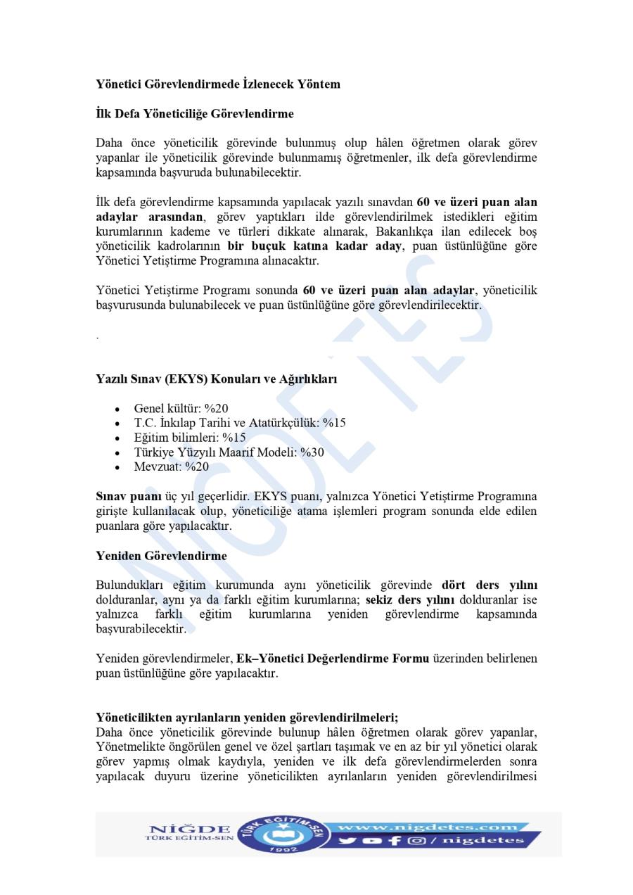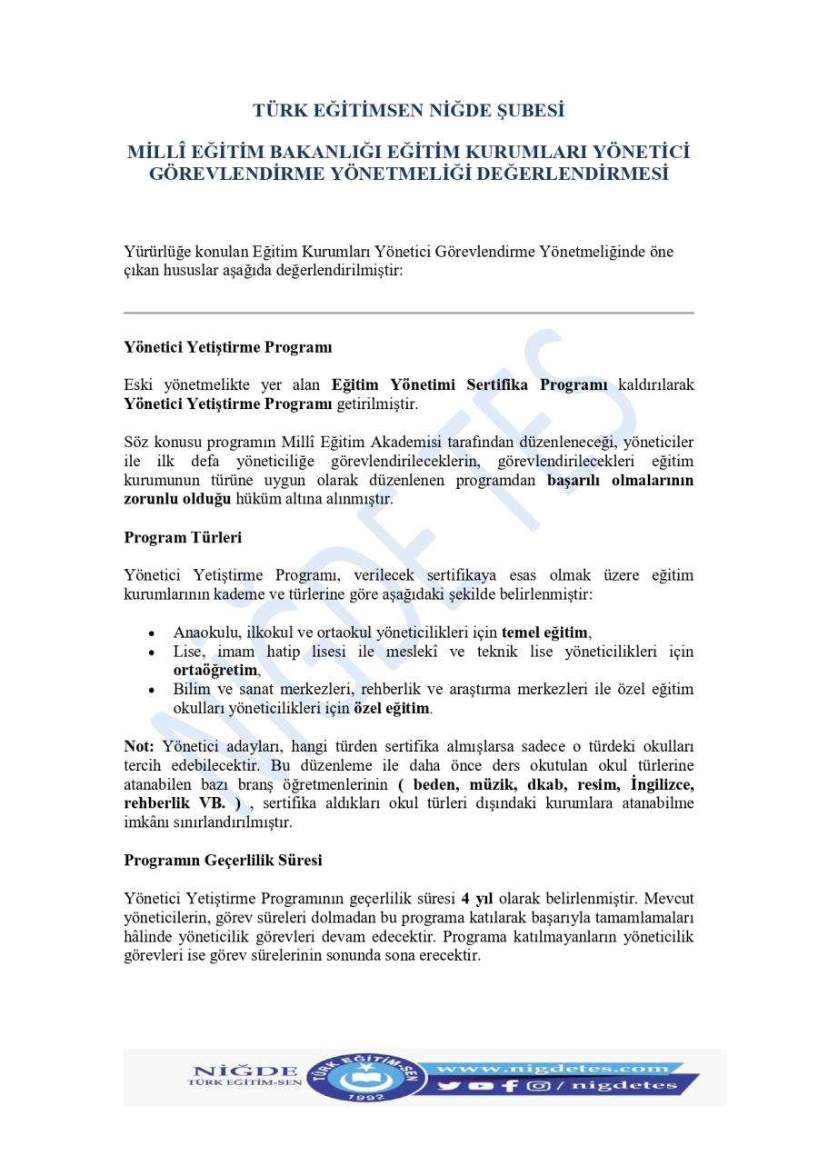 Millî Eğitim Bakanlığı Eğitim Kurumları Yönetici Görevlendirme Yönetmeliği ve Değerlendirme Formu 30-01-2026 Tarihi ile Resmi Gazete de Yayınlandı. Yayınlanan yönetmeliğe dair değerlendirmemiz ve özeti aşağıdaki resim dosyalarındaki gibidir.